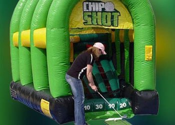 Try our chip shot inflatable golf game if you love playing golf and see how many clubs you use to hit balls into holes. However, the holes here are actually basketball hoop stand for different points (10, 20, 30) dish golf chip shot inflatable will test how good players are of the skill of basic chip shots. A must have game for any small or large event. The chip shot interactive game has a small green that you hit the golf ball towards one of the highest scores inside the inflatable. We supply assortment of clubs and golf balls. A must-have game for any indoor or outdoor event.